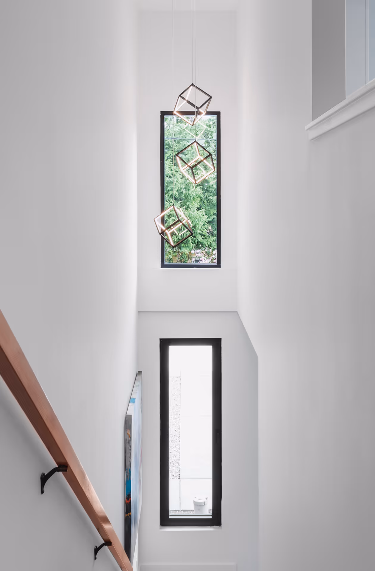 Working with the scale of the neighbourhood, the owners undertook rezoning and redevelopment of a property with one single-family home into a triplex, enabling their young family to build their dream home. The project includes two strata properties with a secondary suite included in one half. The residences were designed to Passive House certification standards.
