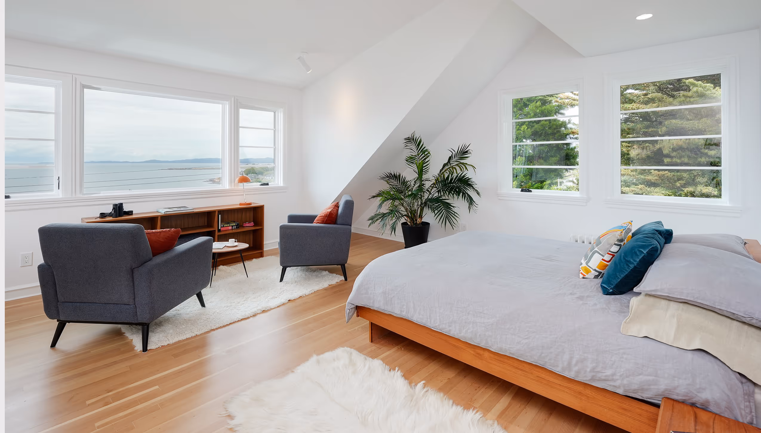 Renovating a home requires a clear vision for how to maximize the potential of the project, within the constraints of the existing structure. The existing second floor was dark, with two small dormers and almost no windows to the expansive ocean view of the Juan de Fuca straight. Fold worked closely with the Client to redesign the upper floor by adding a large shed dormer, view windows, and a primary suite with walk in closet. Additional scope included a fully redesigned chef kitchen, new windows, landscaping, and updated bathrooms. The new design reflects the character of the existing home, while optimizing the best features of the site.